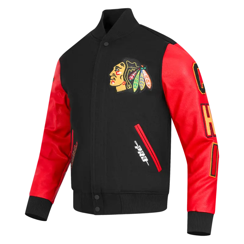 NHL CHICAGO BLACKHAWKS CLASSIC MEN’S WOOL VARSITY JACKET (BLACK\/RED)