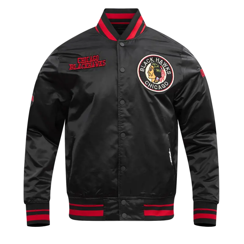 NHL CHICAGO BLACKHAWKS CLASSIC MEN’S SATIN JACKET (BLACK)