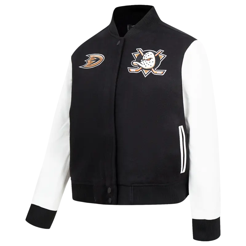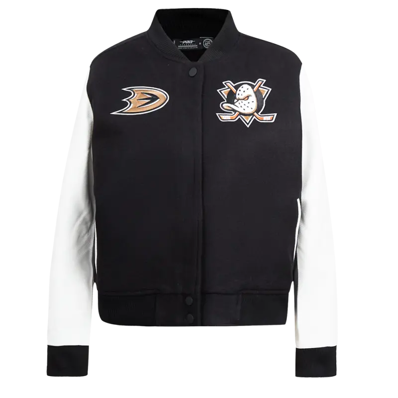 NHL ANAHEIM DUCKS CLASSIC WOMEN’S WOOL VARSITY JACKET (BLACK\/WHITE)