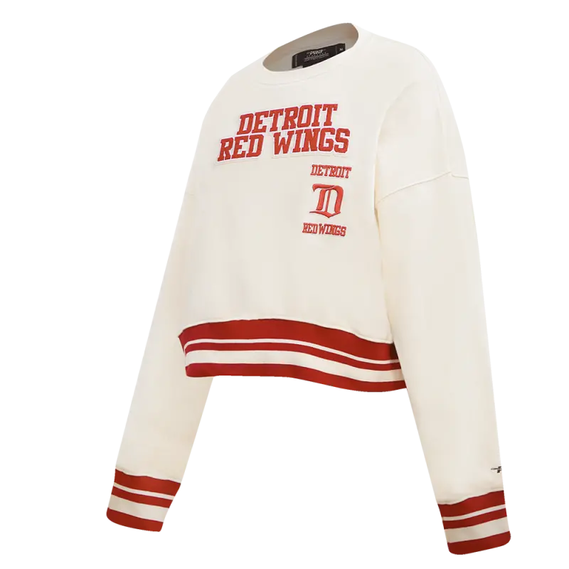 NHL DETROIT RED WINGS RETRO CLASSIC WOMEN’S RIB CROPPED PULLOVER HOODIE (EGGSHELL\/ RED)