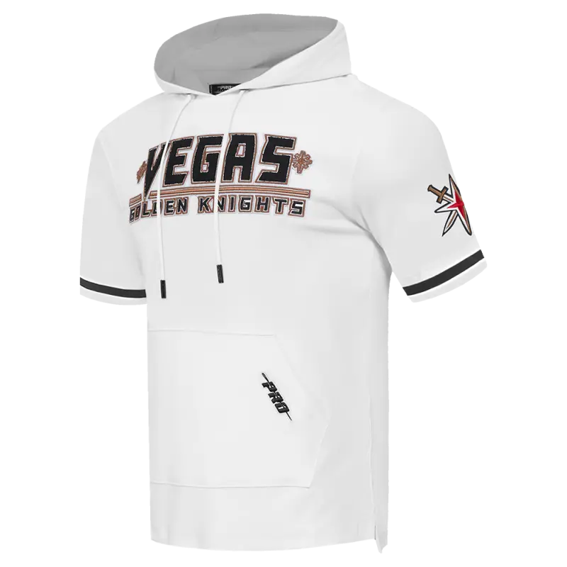 NHL VEGAS GOLDEN KNIGHTS CLASSIC CHENILLE MEN’S DOUBLE KNIT SHORT SLEEVE PULLOVER HOODIE (WHITE\/BLACK)