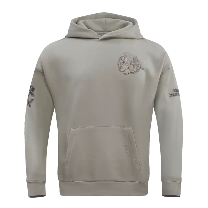 NHL CHICAGO BLACKHAWKS NEUTRAL DROP SHOULDER FLEECE PULLOVER HOODIE (TAUPE)