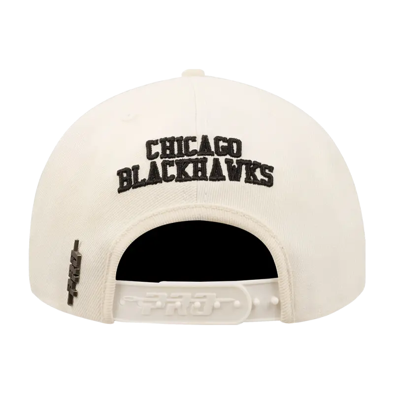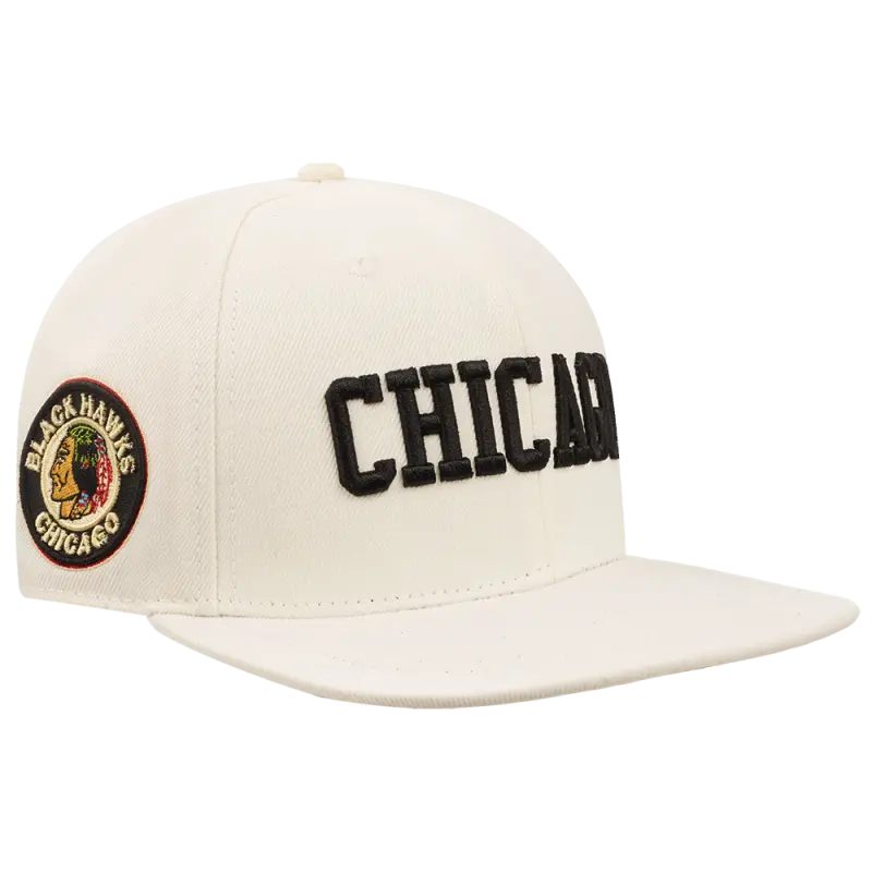 The Pro Standard Premium NHL Chicago Blackhawks Retro Classic Unisex Wordmark Logo Wool Snapback (Eggshell)