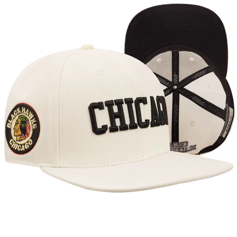 NHL CHICAGO BLACKHAWKS RETRO CLASSIC UNISEX WORDMARK LOGO WOOL SNAPBACK (EGGSHELL)
