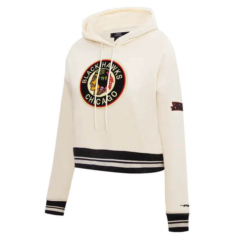Home / Shop / Chicago Blackhawks / NHL CHICAGO BLACKHAWKS RETRO CLASSIC WOMEN’S RIB CROPPED PULLOVER HOODIE (EGGSHELL\/ BLACK)
