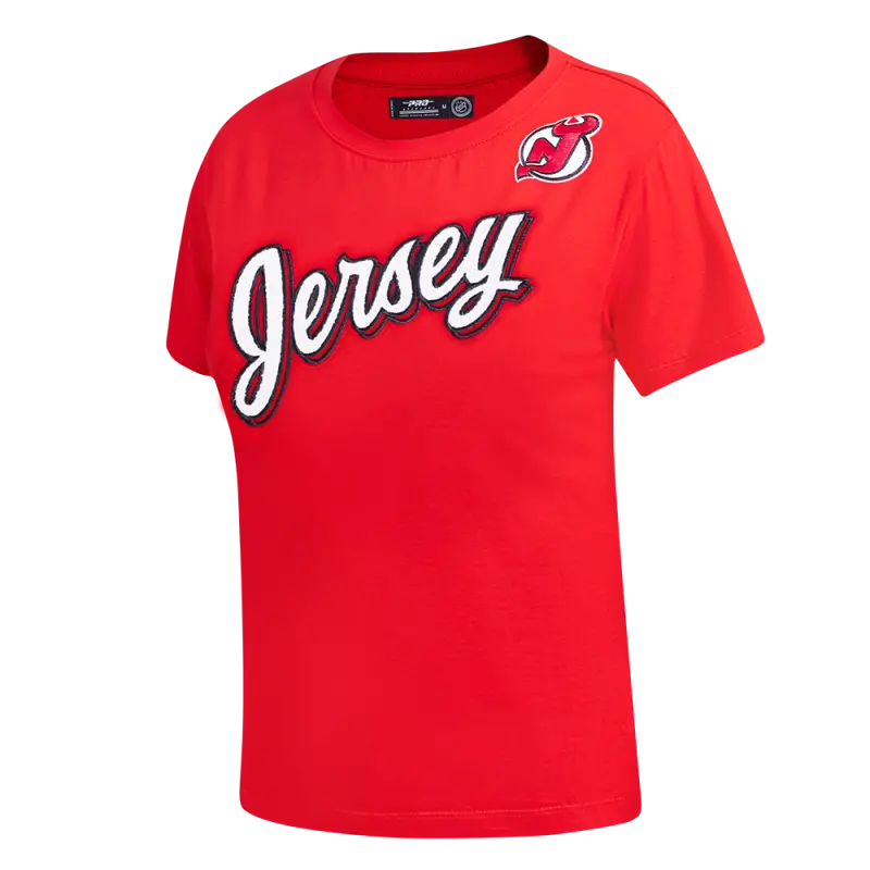 NHL NEW JERSEY DEVILS CLASSIC SHORT SLEEVE WOMEN’S SINGLE JERSEY SLIM FIT TEE (RED)
