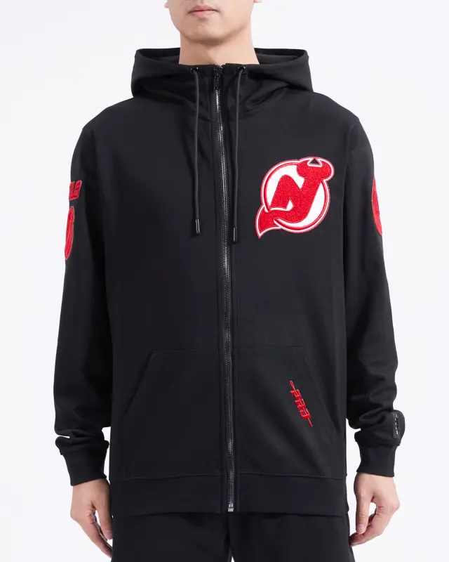 NHL NEW JERSEY DEVILS TC TONAL OUTLINE MEN’S DK FZ PO HOODIE (BLACK)