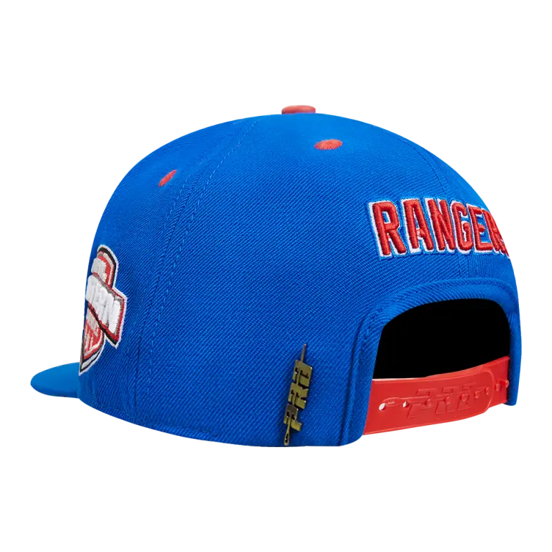 NHL NEW YORK RANGERS OLD ENGLISH UNISEX 6 PANEL SNAPBACK HAT (ROYAL BLUE)
