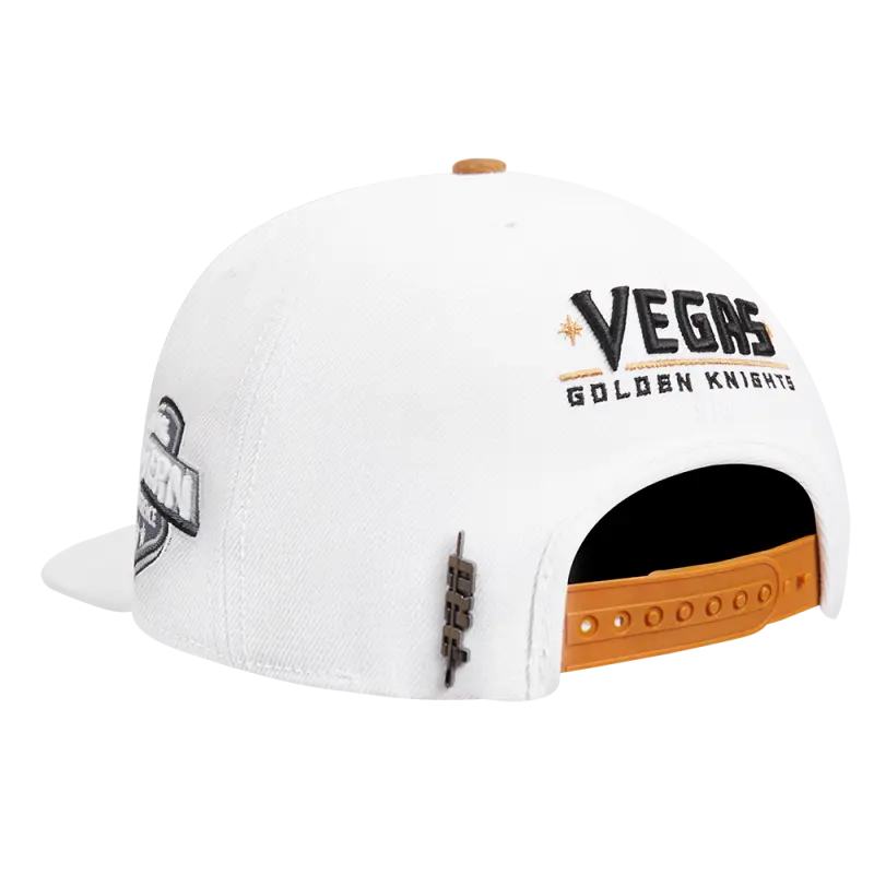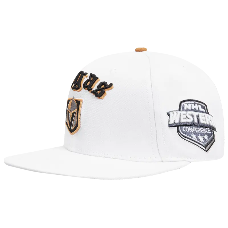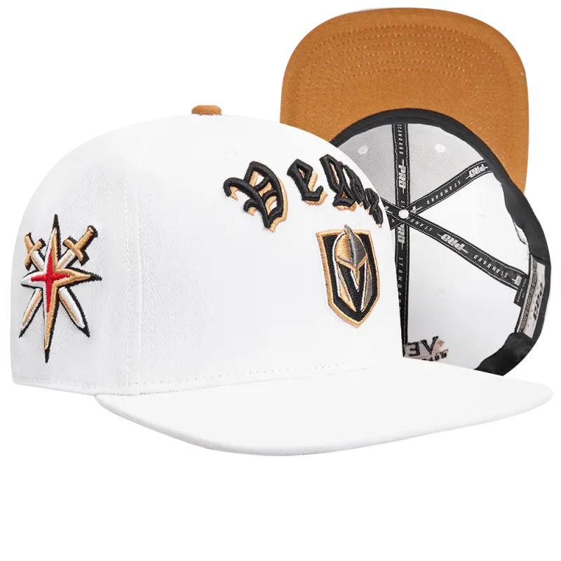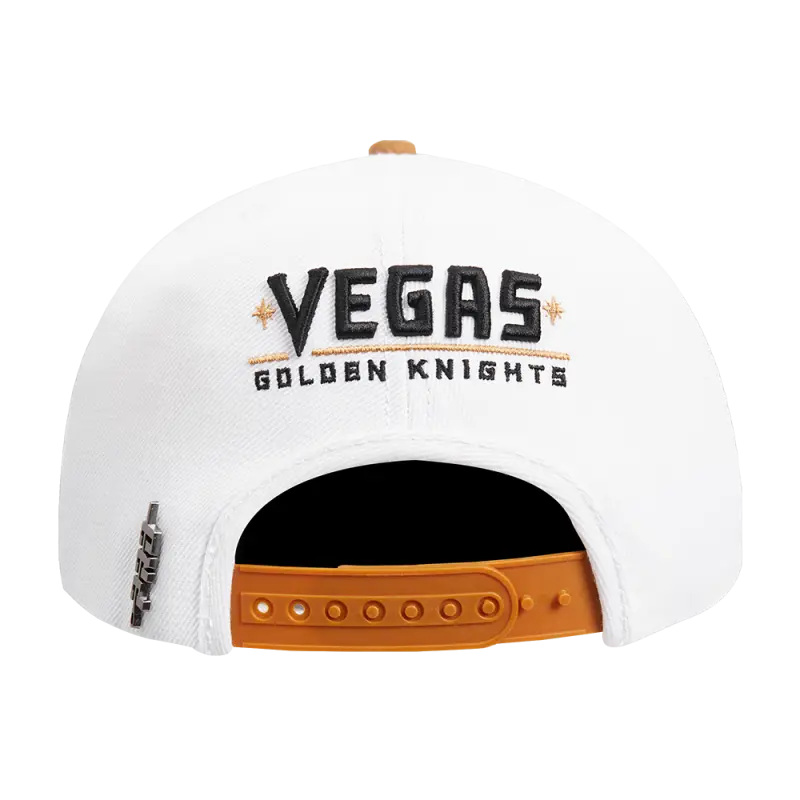 NHL VEGAS GOLDEN KNIGHTS OLD ENGLISH UNISEX 6 PANEL SNAPBACK HAT (WHITE)
