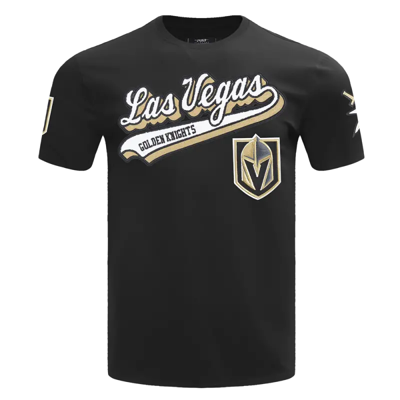 NHL VEGAS GOLDEN KNIGHTS SCRIPT TAIL MEN’S SINGLE JERSEY TEE (BLACK)